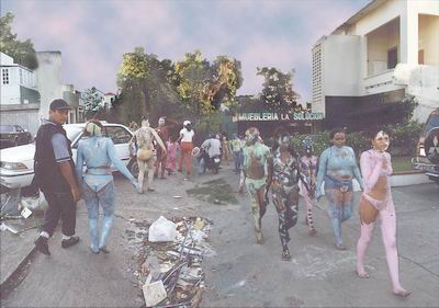 En este Santo Domingo de principios del siglo XXI estamos frente a un cielo que refleja el body art de estos infelices. Sí, infelices por el cansancio, la expresión de dudas, de búsquedas, de miedo ante el lente. Hubiese querido estar ahí desde más temprano o más tarde para ver cómo se delizaban en vía contraria, pero la suerte no siempre acompaña a los valientes.