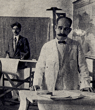 Juan Bautisa del Toro Andújar, a la izquierda, en su época de "delineante", junto al Ing. Osvaldo Báez. Foto tomada de las "Memorias del Ayuntamiento de Santo Domingo", de 1920. [Nota de MDM]