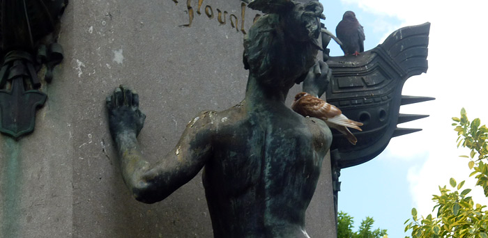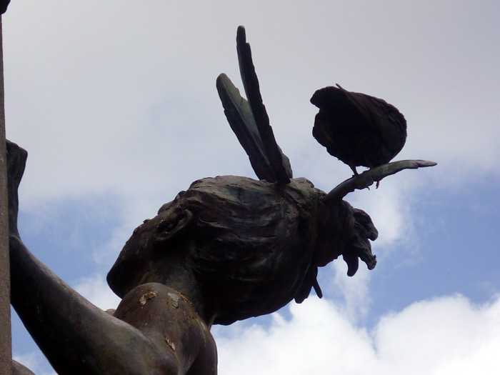 el emblemático parque Colón se degrada ante la falta de una gerencia urbana eficiente y unas imagenes kitsch de palomas volando.