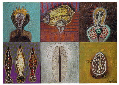 Las "Capellanías", s¡ bien se constituyen en respuestas de una visualización artística, podría entenderse además como las consistencias del mundo Capeliano: ontológico, sicrético, multifórmico, estridente y postmoderno, el cual sigue conformándose con reafirmaciones extensivas y reorientadas. Son capítulos cargados de referencias, de campos expresivos, de versiones entrelazadas y adopciones coincidentes más que de influencias como suelen juzgar numerosos observadores de tales capellanías.